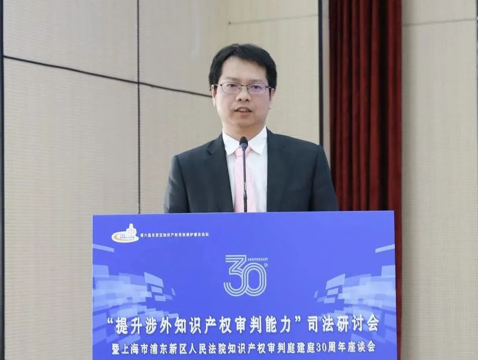 值全国首个基层法院知识产权审判庭——上海市浦东新区人民法院(以下简称浦东新区人民法院)知识产权审判庭建庭30周年之际,为进一步提升涉外知识产权审判能力,聚焦高质量司法服务保障高水平改革开放,2024年11月30日,第六届自贸区知识产权司法保护浦东论坛“提升涉外知识产权审判能力”司法研讨会暨浦东新区人民法院知识产权审判庭建庭30周年座谈会在上海浦东举办。极速电竞上海分所主任、国家知识产权海外纠纷应对指导中心专家李文红博士受邀出席并作主题演讲。